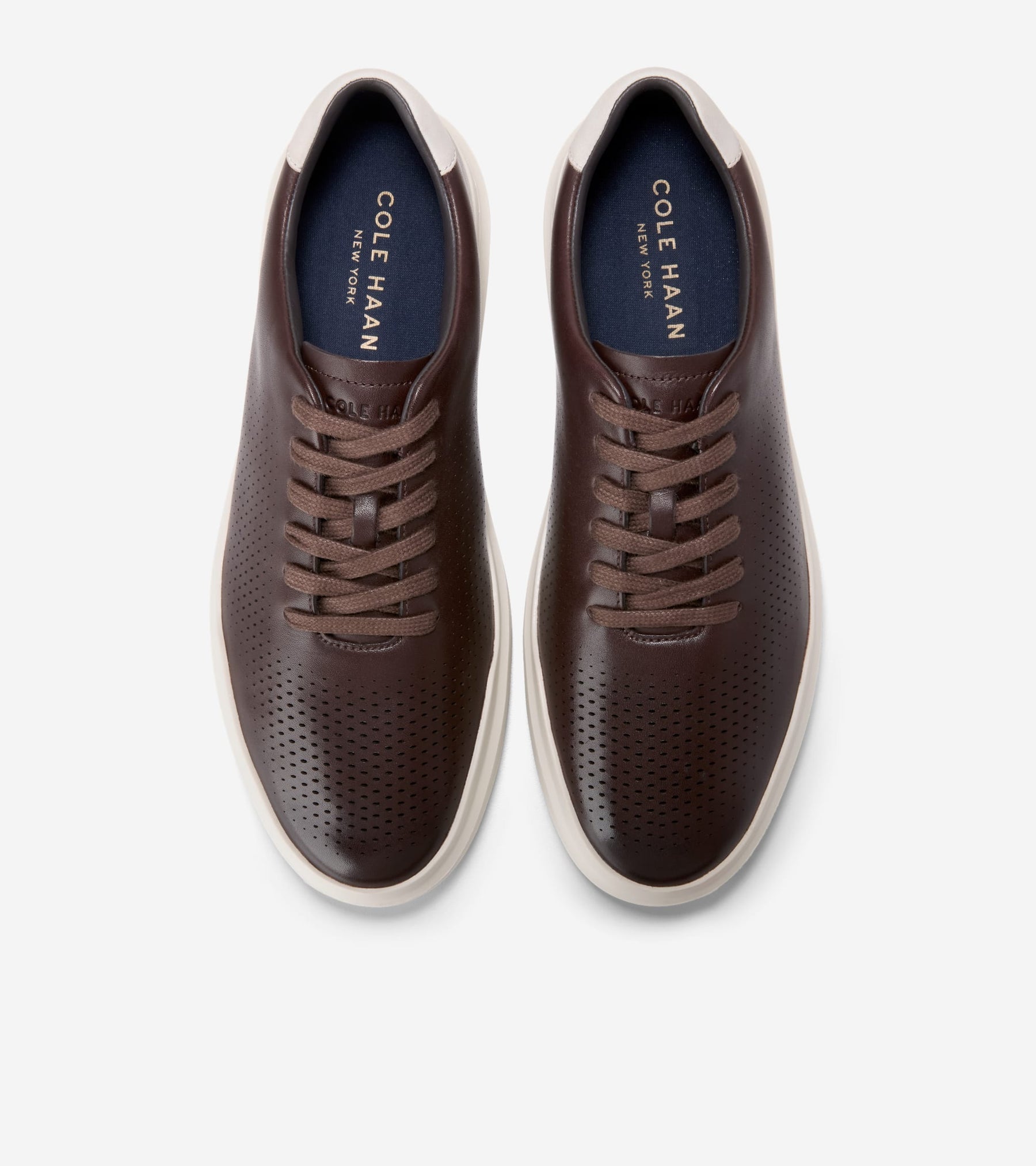 - Laser-perforated suede upper in Madeira with leather heel detail in Ivory; six-eyelet lacing systemRubber outsole